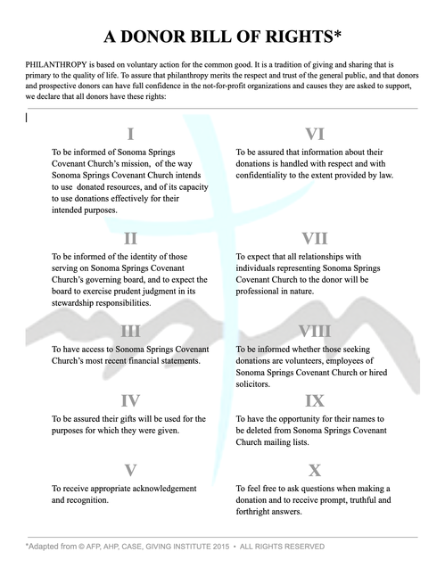 Make your automatic bank drafts or personal checks payable to "Sonoma Springs Covenant Church" and send them to: